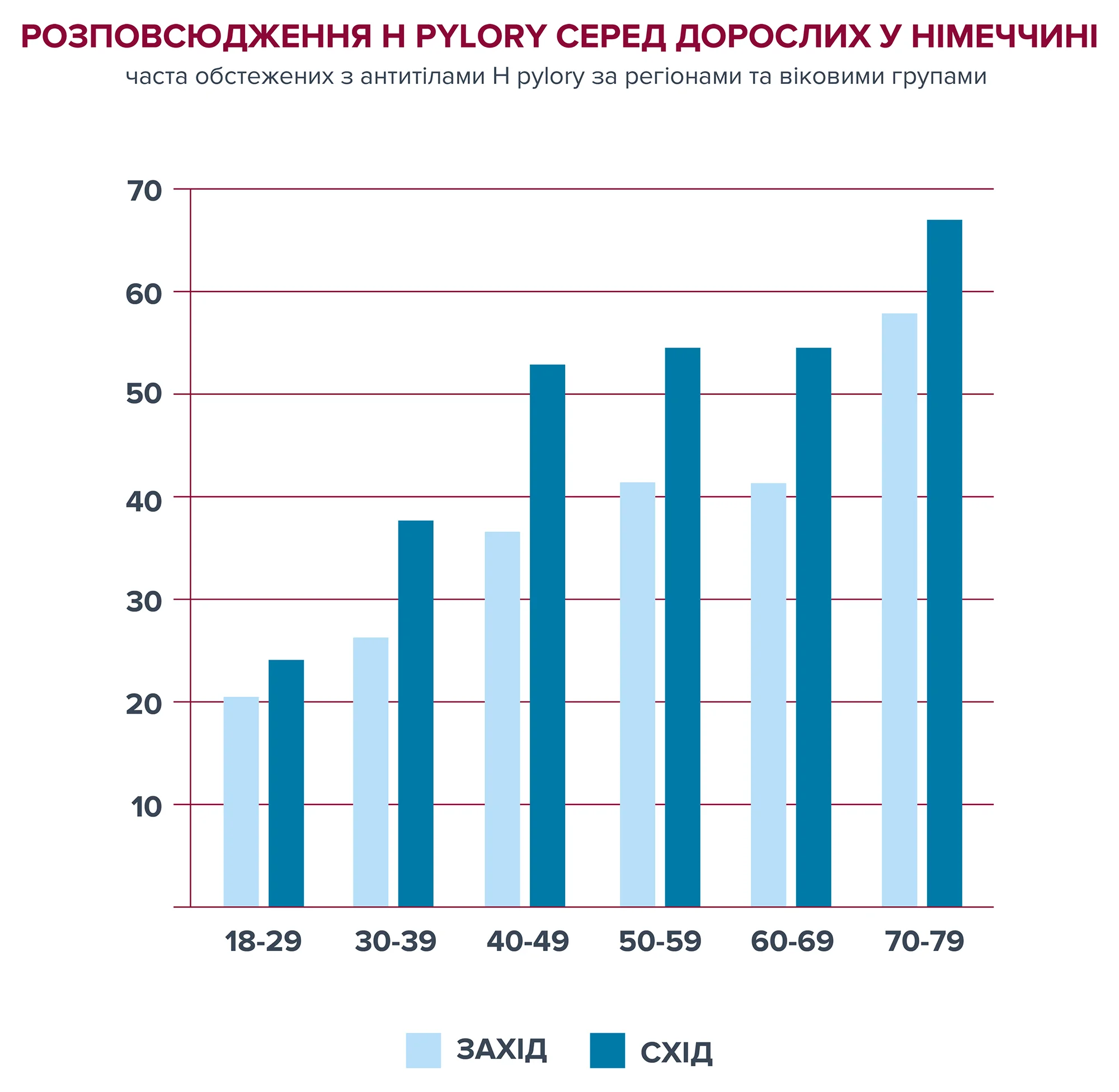Сучасні опитування показують, що понад 50 % людей старше 60 років заражені H. pylori, причому інфекція часто набувається в дитинстві. Хоча колонізація шлунку H. pylori часто безсимптомна, приблизно у половини заражених через роки розвивається хронічний атрофічний гастрит. Ступінь та активність гастриту визначаються щільністю колонізації H. pylori; у багатьох випадках запалення слизової оболонки шлунку переростає у виразку шлунку (ulcus ventriculi), серйозним показником якої є кровотеча (кров у калі, блювота кров’ю).