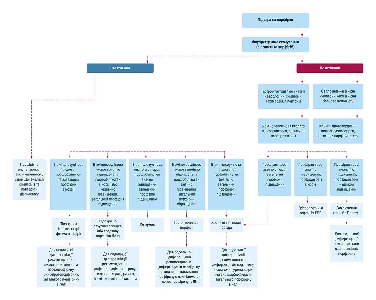 Таким чином стає зрозуміло, що порфірії виступають як первинні еритропоетичні і печінкові розлади, в особливих випадках можуть одночасно порушуватись функції обох систем (з можливим впливом на інші органи). Це і є основою поліморфізму клінічних проявів, які можуть імітувати інші захворювання і тим самим ускладнювати і затримувати діагностику.